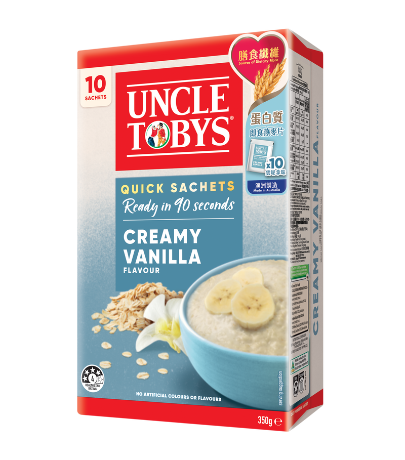 *指UNCLE TOBYS®即食燕麥片(原味), 每100克含3.6克β-葡聚糖。根據美國食品及藥物管理局(FDA)建議 ˒ 每日攝取3克燕麥的β-葡聚糖水溶性纖維 ˒ 配合低飽和脂肪及低膽固醇膳食 ˒ 可降低血液膽固醇水平◦