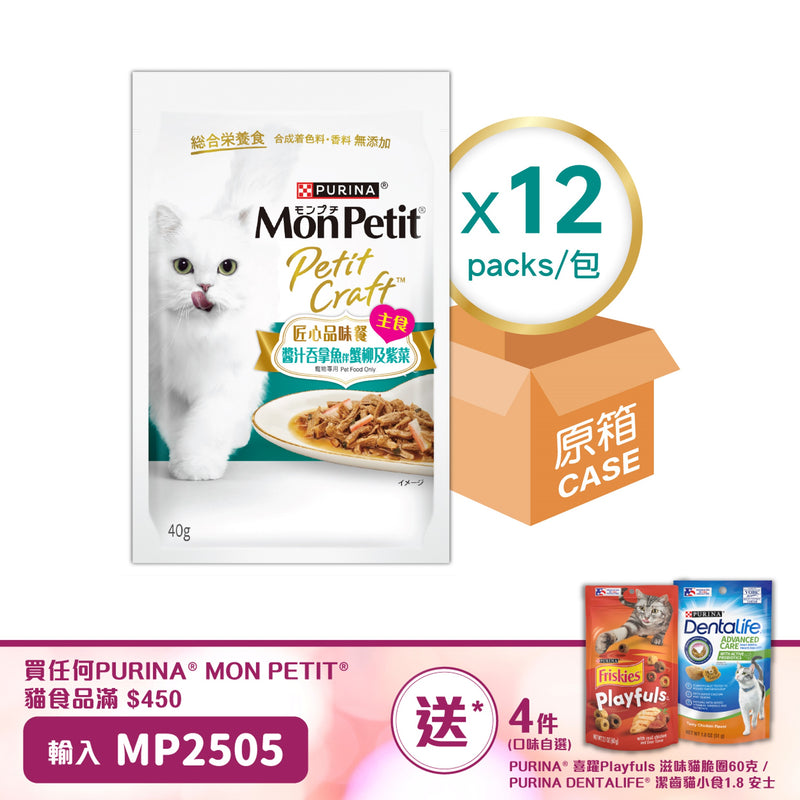 PURINA® MON PETIT® 匠心品味餐醬汁吞拿魚伴蟹柳及紫菜 12 x 40克
